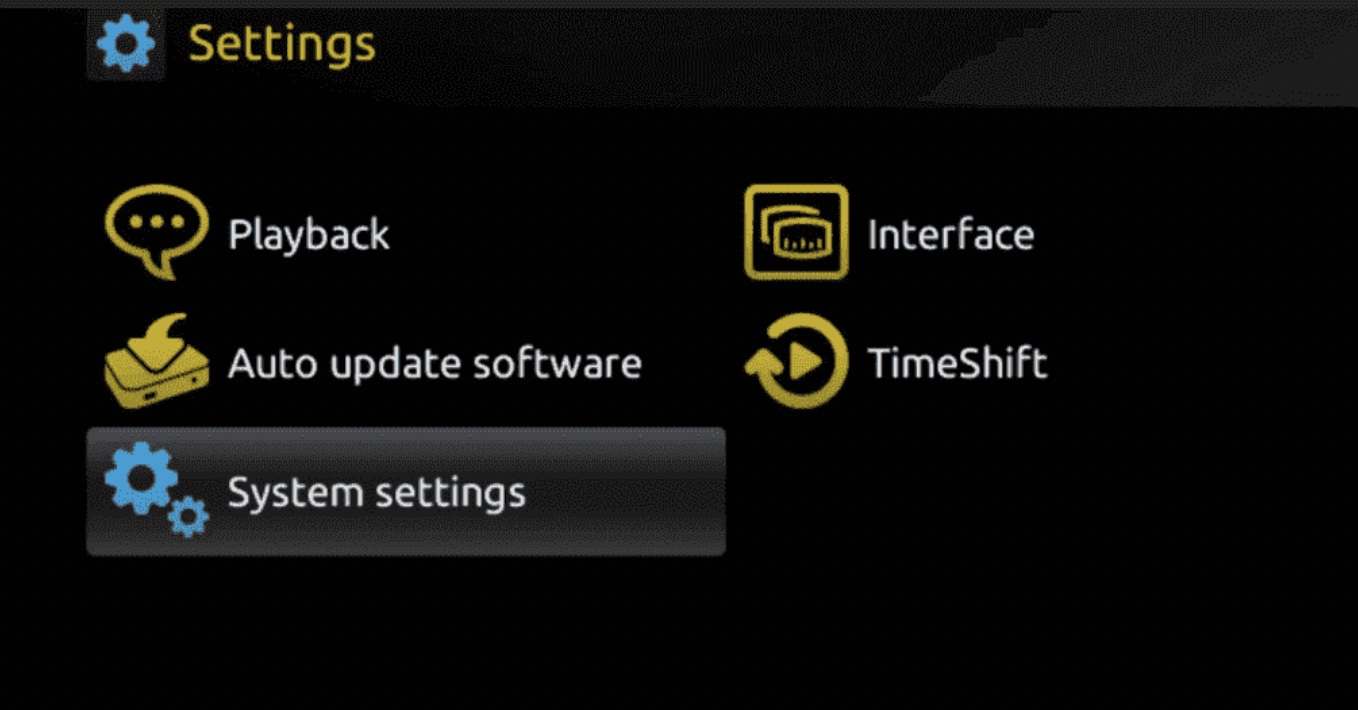 Step 1: When the box is being loaded the main portal screen appears. After that click on “settings”, and press the remote button “SETUP/SET”.